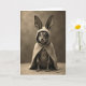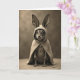 This card shows a small, mysterious bunny-like creature centered against a softly shaded, single-tone background, gazing straight ahead with a gentle, inviting look 🐰. Its oversized, upright ears rise above a simple hooded cloak, giving it a shy, endearing presence, as if it’s quietly sharing a moment with someone close. The face is framed by the hood, with large glowing eyes, a tiny nose, and fine whiskers that suggest a tender curiosity, like a friendly glance held a beat longer than usual. Warm sepia tones wash over the scene, and soft light falls across the cloak’s fabric, showing subtle folds and a plush texture. A short greeting sits near the top in small, light-colored lettering, while a second line of text rests near the bottom in a slightly darker tone for contrast 🌷. Beneath the cloak’s hem, slender little digits peek out, resting as if patiently waiting for a reply. The ground below is lightly textured and dotted with a few faint, leaf-like fragments.