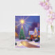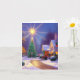 Cette carte de vœux vierge présente une étoile brillante brillant au-dessus d'un arbre de Noël dans une petite ville remplie de décorations de Noël. Personnalisez l'intérieur avec un vœu de vacances personnalisé ou une note personnelle.