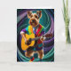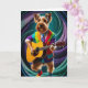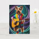 Un Terrier écossais en costume coloré joue de la guitare acoustique.