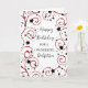 Carte d'anniversaire pour parrain avec un design amusant étoiles et tourbillons en noir et rouge et verset réfléchi.