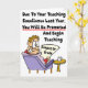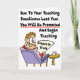 Une Carte Amusante Pour Les Enseignants. Imaginez la surprise d'un enseignant lorsqu'il est mis au défi d'enseigner un sujet ou un niveau différent. Notre carte de voeux intitulée, En Raison De Votre Excellence Enseignante Dernière Année, Vous Serez Promu Et Commencer L'Enseignement XXXXXX XXXXXX ? ? ? ? ? ? Vous pouvez remplir le sujet ou le grade pour répondre à vos besoins. N'importe quel enseignant aimerait ce design amusant, qui peut aussi être trouvé sur beaucoup d'autres produits dans notre magasin. Parcourez et trouvez des produits de cadeaux parfaits pour vos enseignants, hommes, femmes, tous les membres de la famille et les amis, le jour de la fête des mères, la Fête des pères, l'Action de grâces, le Nouvel An, Noël, le 4 juillet, la fête des anciens combattants, la Saint Patrick, Halloween et peut-être quelques autres. Parcourez, et je suis sûr que vous trouverez ce cadeau parfait pour vous-même et les autres. Merci pour votre temps. Profitez