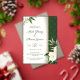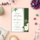 Une élégante invitation de mariage avec un design floral blanc et vert avec des feuilles luxuriants et des fleurs sur le côté gauche, complétée par un arrière - plan à motifs vert foncé avec une bande verticale dorée sur la droite. Le texte invitation les invités à la célébration mariage de Matt Zhang et Shawn Garcia, prévue pour le dimanche 10 mars à 21h00 à 123 Anywhere St, Any City, avec une réception à suivre. Les détails de la RSVP comprennent un site Web (www.reallygreatsite.com) et un numéro de téléphone (+123-456-7890), se terminant par un message chaleureux qui attend avec impatience de célébrer avec les invités.