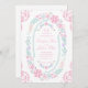 Célébrez votre journée spéciale avec ce charmant faire-part de mariage floral pastel. Doté d'une délicate couronne de motifs floraux roses, violets et verts, ce design respire romantisme et élégance. Le modèle personnalisable vous permet d'ajouter facilement vos données personnelles, créant une invitation intemporelle et mémorable pour vos invités. Parfait pour les mariages de printemps, de jardin ou de romantisme.