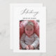 Célébrez l'arrivée de votre petit paquet de joie avec cette Photo Girl Faire-part de naissance Card. Ce design comprend une mise en page photo grandeur nature pour mettre en valeur une image chère de votre nouveau-né, encadrée de tons pastel doux et d'accents délicats parfaits pour une petite fille. Personnalisez avec son nom, sa date de naissance, son poids et sa longueur pour partager votre joie avec votre famille et vos amis. Idéal pour créer un souvenir que les êtres chers chériront pour toujours. Élégante, intemporelle et sincère, cette carte est une belle façon d'annoncer votre nouveau membre de la famille.