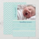 Customisez cette carte de faire-part de naissance bébé moderne et chic avec la photo et les détails de votre bébé doux. La carte comporte un motif de chevron bleu.