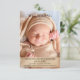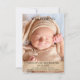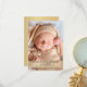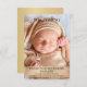 Elégante carte de faire-part de naissance simple avec une photo de votre propre bébé avec une couverture stylisée en or doux et un dégradé d'or sur le dos.