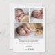 Un faire-part de naissance simple avec la photo de votre nouveau-né avec le nom et les statistiques de naissance dans un script blanc élégant. Au verso, ajoutez 3 images supplémentaires et un message personnalisé. Cliquez simplement sur le bouton Modifier/Personnaliser pour customiser cette conception.