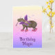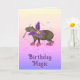 A cute and whimsical birthday design featuring an adorable capybara fairy holding a magic wand in her mouth, surrounded by sparkling stars. She wears fashionable pink shoes and stands on a soft gradient background that blends gentle yellow, pink, and lilac tones. This playful and dreamy illustration is perfect for girls who love magical animals, fairy vibes, and charming birthday wishes.