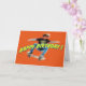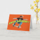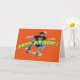 Une carte d'anniversaire montrant un skateboader plein d'action dans l'action avec le joyeux anniversaire de mots dans l'écriture jaune lumineuse sur un fond orange vif. Écrivez votre propre message au milieu de la carte.