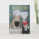Carte d'anniversaire de Chef Cats drôle personnalisable. Dehors : "Nous sommes en cuisine quelque chose de spécial pour votre anniversaire !" À l'intérieur : "Comment sonne Mice-A-Roni ?" Vous pouvez customiser le texte, les polices et les couleurs des polices. Voici une autre version :