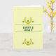 Designed with a pale chartreuse background, the card keeps a balanced, symmetrical layout that feels calm and inviting. At the top and bottom, matching scenes show an upward-facing golden horseshoe holding a four-leaf clover, like a shared lucky charm between two people 💚. On each side of those main icons, smaller three-leaf shamrocks in green sit neatly as accents, echoing the St. Patrick’s Day theme ☘️. Centered in the middle is the message “LUCKY 2 HAVE U” in forest green, set in uppercase lettering that reads clearly at a glance. Thin horizontal lines in the same forest green run above and below the text, framing it like a gentle underline and overline. The simple, flat artwork and strong color contrast make the gold and greens stand out without looking busy. The repeated horseshoe-and-clover pairing at both ends gives the design a sweet, companionable feel, like matching tokens exchanged between friends. The final look is two golden horseshoes with green clovers near the top and bottom, with the forest-green words centered between parallel lines on the chartreuse field.