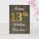 Carte Faux Wood, Faux Gold 13e anniversaire + Nom person
