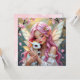 Carte Fée aux cheveux roses et bébé dragon blanc
