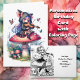 Carte d'anniversaire personnalisée pour une fille. Jolie petite fée fantaisiste jouant de l'alto au sommet d'un champignon dans une forêt magique pleine de fleurs. À l'intérieur de la carte se trouve une page de coloriage avec un thème de conte de fées.