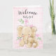 Beau éléphant aux fleurs roses sur rose et blanc en vichy arrière - plan pour nouveau bébé filles félicitations Tout le texte est modifiable.