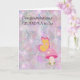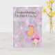 Carte de félicitations pour Grand-mère à être. L'arrière - plan est des tourbillons roses, et le premier plan a un papillon jaune et un champignon rose.