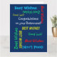 Quelle carte de voeux merveilleuse, amusante et heureuse de retraite d'un groupe. Sur la couverture, votre texte se répète dans différentes polices et couleurs sur un arrière - plan bleu foncé. Aussi facile à modifier à l'intérieur du texte, si désiré. La taille par défaut est JUMBO, pour laisser de la place à beaucoup de collègues de travail à signer. Il est facile de passer à la taille standard, si désiré. Tous droits réservés © 2014 Marcia Socolik.