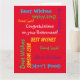 Quelle carte de voeux merveilleuse, amusante et heureuse de retraite d'un groupe. Sur la couverture rouge, votre texte se répète dans différentes polices et couleurs sur un arrière - plan rouge. Facile à modifier le texte et la couleur du capot. Aussi facile à modifier à l'intérieur du texte, si désiré. La taille par défaut est JUMBO, pour laisser de la place à beaucoup de collègues de travail à signer. Il est facile de passer à la taille standard, si désiré. Tous droits réservés © 2015 Marcia Socolik.
