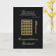Célébrez la réussite d'un diplômé en affaires ou en comptabilité avec cette élégante carte noire et or. Doté d'une calculatrice et d'une icône de stylo, ce design symbolise le dévouement et le travail acharné nécessaires pour réussir dans le monde de la finance et des affaires. Le message intérieur souhaite le bonheur et le succès des diplômés dans leurs futures entreprises, faisant de cette carte un choix parfait pour quiconque entre dans une carrière en comptabilité ou en affaires. Réfléchie et professionnelle, cette carte est idéale pour reconnaître leur réussite et leur brillant avenir dans le monde des affaires. (Le look or est numériquement uniquement créé.)