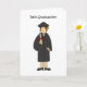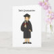 Dessin d'une dame en tenue de remise de diplômes, accompagné du mot "Félicitations" en espagnol.