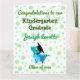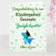 Carte de félicitations adorable et moderne pour les diplômés de maternelle. Le design comprend un T-Rex de dinosaure bleu vert mignon avec un arrière - plan point/polka le modèle est personnalisable avec nom de diplômé, classe d'année, titre personnel. Parfait pour les enfants, petits-fils et fils de maternelle, surtout si les enfants aiment les animaux et particulièrement les reptiles dinosaures et T-Rex, ils vont adorer!