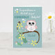 Conçu en vert, jaune, avec des coeurs, un mignon hibou rose assis sur une branche et une chenille. Ajoutez simplement son nom.