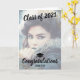 Carte de vœux de félicitations personnalisée avec une photo du diplômé, un overlay blanc, une décoration de coin à paillettes dorées, l'année de promotion, une casquette de diplômé et leur nom.