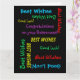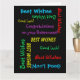 Quelle carte de voeux de retraite merveilleuse, amusante et heureuse d'un groupe. Sur la couverture, votre texte se répète en différentes polices et couleurs sur un arrière - plan noir. Aussi facile à modifier à l'intérieur du texte, si désiré. La taille par défaut est JUMBO, pour laisser de la place à beaucoup de collègues à signer. Il est facile de passer à la taille standard, si on le souhaite. Tous droits réservés © 2014 Marcia Socolik.
