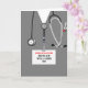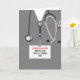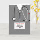 Modèle de carte de voeux créatif pour la remise des diplômes d'infirmière avec un vêtement d'hôpital gris. Modifiez le texte pour ajouter un nom et un message personnel.