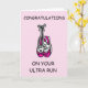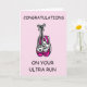 Une paire de chaussures de caricature rose et blanc sur un arrière - plan rose pâle et les mots "Félicitations pour votre Ultra run".