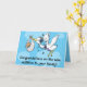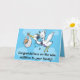 Félicitations amusantes pour votre carte bébé dont la cigogne de dessin animé porte un casque et qui offre un bébé hurlant. La partie extérieure de la carte dit "félicitations pour le nouvel ajout à votre famille !" et la partie intérieure dit "Bonne chance ! (Vous en aurez besoin !) mais vous pouvez changer le texte pour dire ce que vous voulez car il est entièrement personnalisable !