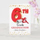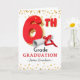 Pour lui, Félicitations pour le diplôme de 6e année, carte de voeux papier. Un grand 6ème ballon en rouge et or avec un diplôme et des étoiles d'or. Customisez en ajoutant un nom à la couverture. copyright © Shoaff Ballanger Studios, 2025.