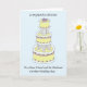 Un gâteau mariage à carreaux de couleur pastel et les mots "Félicitations à un Cher Ami et son mari pour leur mariage".