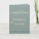 Carte de félicitations de fiançailles de mariage moderne que vous personnalisez avec le nom du couple chanceux. Le texte à l'intérieur se lit comme suit : Nous vous souhaitons beaucoup de bonheur dans votre voyage ensemble ! Félicitations pour vos fiançailles ! Couleurs vintage avec un aspect de fond texturé. Éléments de conception de cœur et de croix inclus.