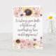 Des tournesols vibrants et d'autres fleurs en jaune, rose pâle et marron illustrent ces cartes de félicitations de mariage. Le recto de ces cartes indique : « Nous vous souhaitons à tous les deux une vie de amour éternel et de bonheur ! » Le message à l'intérieur est prêt à être personnalisé avec votre propre message spécial, il suffit d'utiliser le champ de modèle pour ajouter votre propre texte ou laisser le message tel quel.