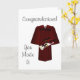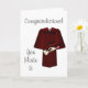 Casquette et robe rouges avec le diplôme. Textes personnalisables