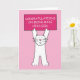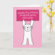 Un grand chat blanc caricaturé debout sur ses pattes arrières. Le chat tient une pancarte rose qui dit "Félicitations d'avoir été faite fille à la tête". L'image a un arrière - plan rose pâle.