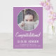 Purple Félicitations Simple Graduate 2 Photo Graduation Card. Design élégant et simple avec script doré et photo personnalisée. Ajoutez votre photo et votre message pour le diplômé à l'intérieur de la carte.
