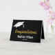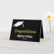 Cette carte de graduation en noir et blanc a un casquette de diplômé blanc dans le coin supérieur gauche. Afficher le texte dit 'Félicitations' en faux script or. Customisez la carte avec le nom du diplômé en blanc. Vous pouvez même ajouter la classe d'année sous le nom. Il y a un message à l'intérieur et un endroit pour ajouter le nom du diplômé et le nom de l'expéditeur à l'intérieur.