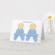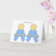 Bébés jumeaux de bande dessinée portant les équipements bleus assortis et le mot "Félicitations".