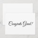 Félicitations Grad noir et blanc coutume script classique graduation de texte Note Card. Design moderne minimaliste et élégant. Texte noir entièrement personnalisable en couleur arrière - plan blanche. Toutes les couleurs sont modifiables. Grand cadeau pour les diplômés, les diplômés. Consultez le reste de la collection pour obtenir des cadeaux de remise de diplômes, des faveurs, des fournitures de fête et des articles de décoration supplémentaires.