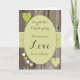 Personnalisez ce fond rustique à effet bois sombre, avec des cœurs blancs et verts, carte de Jour de Mariage pour la Mariée et le Marié, avec leurs noms.