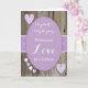 Personnalisez ce fond rustique de couleur bois foncé, avec des cœurs blancs et violets, carte de Jour de Mariage pour la Mariée et le Marié, avec leurs noms.