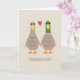 Jolis canards colverts de dessin animé se tenant la main. Recto : "FÉLICANARDS". Intérieur : "Vous avez réussi !" Le texte peut être personnalisé avec votre propre sentiment pour le couple heureux. Une carte de félicitations de mariage drôle pour les jeunes mariés et mariées. Visitez le monde de Jenn's Doodle pour encore plus de cartes de félicitations de mariage et d'articles cadeaux amusants avec ces canards adorables.