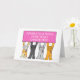 Quatre chats caricaturaux debout sur leurs pattes arrières, tenant un grand panneau rose qui dit "Félicitations Neuf Ans de Cancer Libres". L'image a un arrière - plan blanc.