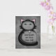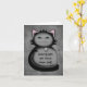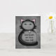 Un chaton sournois en noir et gris tenant une souris en jouet sur une carte de notes qui est libellée comme une carte de félicitations amusante pour un nouveau propriétaire de chat.
