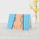 Félicitations amusantes pour la Colonoscopie, Open Hospital Gown carte de voeux papier. Illustration d'une robe d'hôpital ouverte révélant la face arrière de quelqu'un. Gown est dans un tissu à motifs pointillés bleu et bleu-vert. Image et copyright ©Shoaff Ballanger Studios.