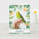 Quand quelqu'un adopte un oiseau de compagnie dans un refuge, cette carte sera un souvenir. Ajoutez une photo de l'oiseau, ou de la personne avec l'oiseau et ajoutez un texte personnalisé tel que l'espèce ou le nom de l'oiseau, tout en les félicitant pour leur adoption d'oiseau. Les feuilles et les fleurs de la forêt tropicale ajoutent un cadre de verdure. L'intérieur est toujours modifiable.