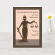 Félicitations pour votre carte de voeux papier de retraite pour quelqu'un qui a une carrière dans le domaine juridique ou du système judiciaire. Illustration numérique avec Lady Justice ou Themis. Copyright © Shoaff Ballanger Studios, 2024.
