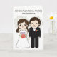 Cette charmante carte est pour ce couple spécial qui a uni par le mariage après leurs joyeuses fiançailles. Peut-être étiez-vous présent à leur mariage ou peut-être pas, mais dans tous les cas, vous vouliez leur envoyer une carte qui exprime à quel point vous vous souciez d'eux. À l'extérieur figure un design épuré et moderne représentant une mariée et un marié élégants, mais dans un style de dessin animé anime. C'est drôle, avec une touche rustique, mais essentiellement moderne. Au dos figure un ensemble de cœurs inspirés de l'aquarelle, mais nous vous encourageons à le remplacer par une photo de vous-même pour rendre la carte encore plus personnelle. À l'intérieur, nous avons écrit un message qui convient parfaitement à l'occasion ; mais au cas où il aurait besoin d'un mot personnel, vous pouvez le personnaliser avec vos propres mots.